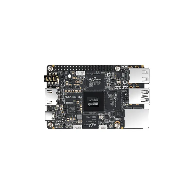 KICKPI-K8D is a development board based on the Rockchip RK3588S2 main control chip. It features a Cortex-A76 x4 + Cortex-A55 x4 processor, low power consumption, and high performance. It supports various communication methods, such as a 4G mobile network, single-gigabit Ethernet access to large networks, dual-band WIFI, etc. It offers stable communication, higher speed, and suitability for various scene requirements.
